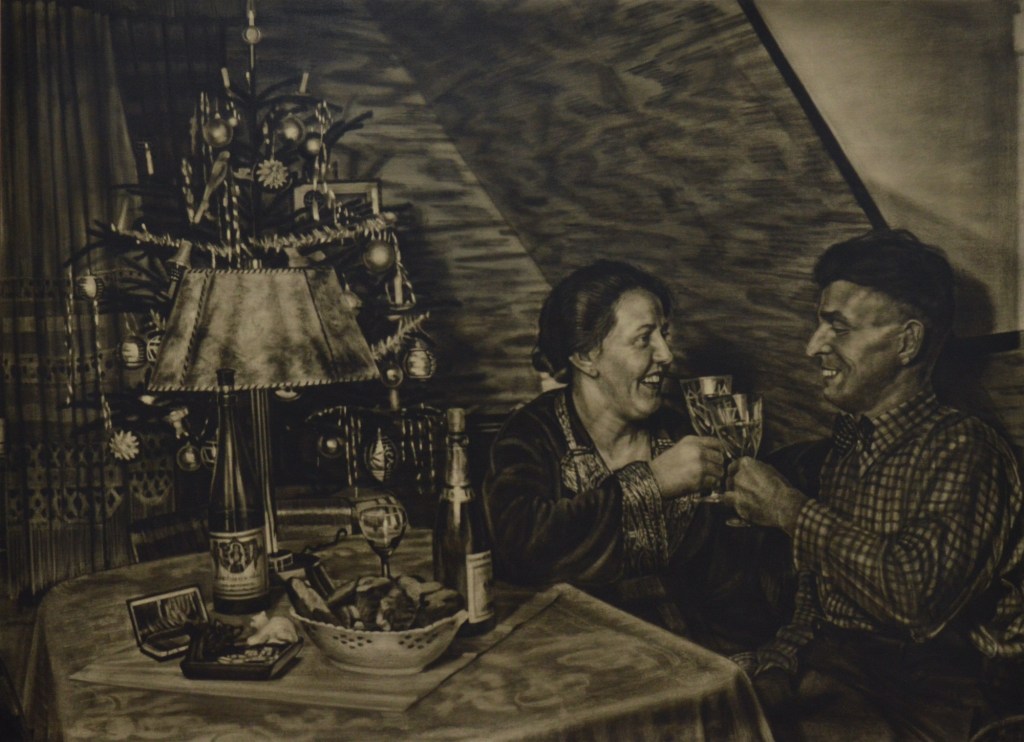 Parties brings the domestic shindig, Christmas, wedding, fancy dress and work bashes together with political visual culture to explore the extraordinary range of images that language can evoke. Combining paintings based on amateur photographic source material with artefacts and objects drawn from the artist’s own collection of vintage propaganda material, Parties takes a historical perspective on the power of the word to shape our lives.