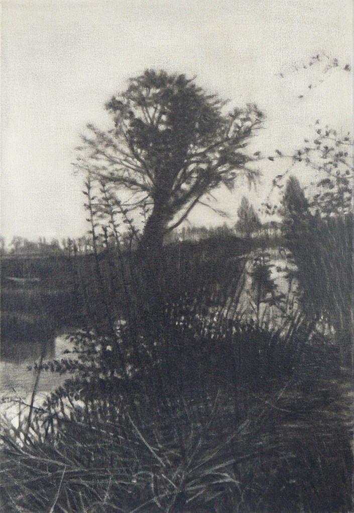 In between other projects, I have worked on an occasional series of landscape paintings. These derive from images found, like the bulk of my work, in flea markets, junk shops, collector’s fairs and any other source of old printed paper snapshots. The attraction with these images emerges from their casual nature, and it is often not immediately obvious why they were recorded other than as records of passing moments of contentment or pleasure. The sense of this motivation and its opaqueness is what enlivens scenes that may otherwise seem fairly unremarkable.