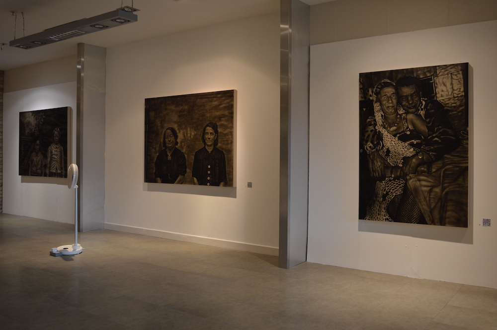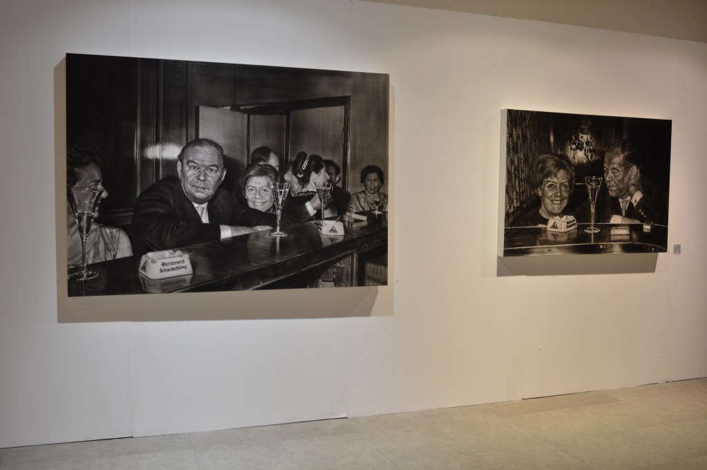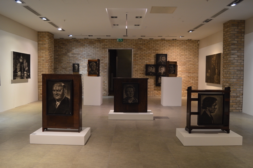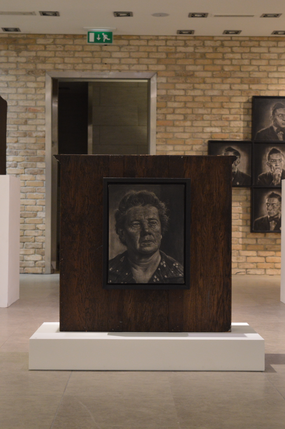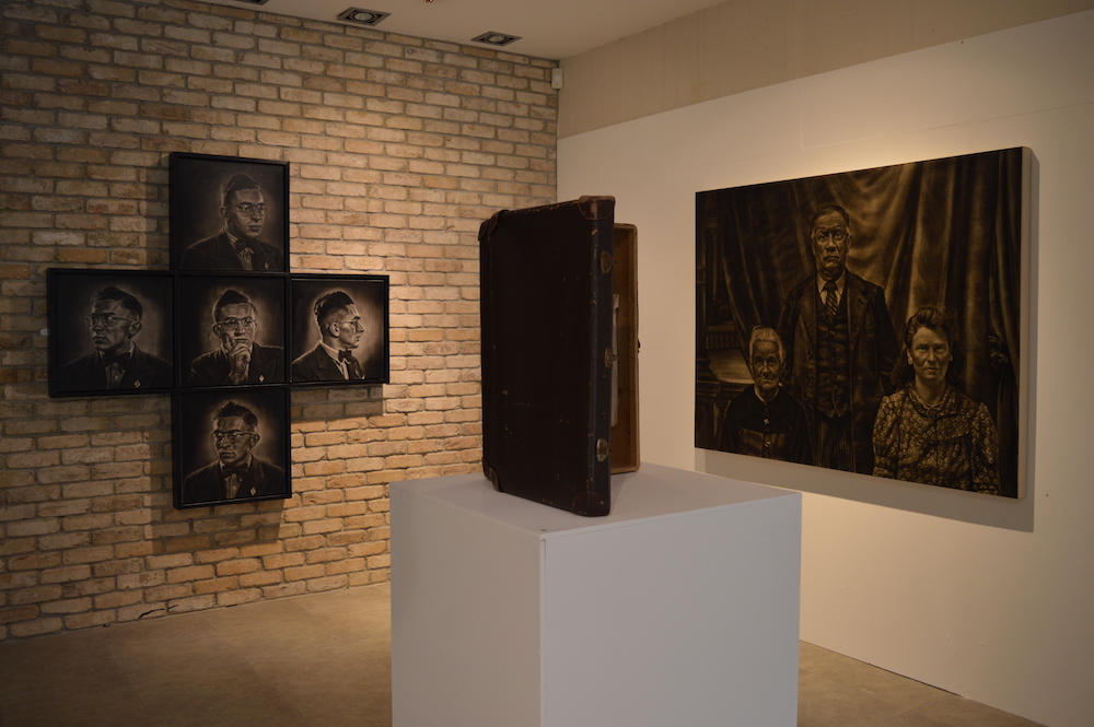 The paintings in this exhibition are situated between an infinite range of tones from black to white, within which figures and faces begin to emerge. Their apparel and backgrounds denote that they are emerging from the past, from history, and in this case a very particular part of history, that of France and Germany during and after World War II. These ‘unknown persons’ emerge out of the richest and deepest tones, out of shadows, echoing their emergence from the depths of history, of lost time. An emergence that has to do with a particular use of oil paint, where the very lightest or white passages and highlights are achieved through a subtractive process that removes and takes away pigment, back to the white ground of the primed canvas itself, to the pristine ground of the very beginning. The darkest tones, by their subtle relationship to those lightest passages, further emphasise the very ground of the painting as integral to the image itself.